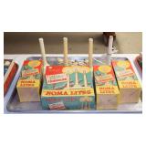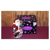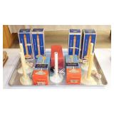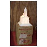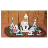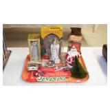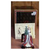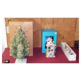 (23)LLADRO FIGURINES (MOST WITH BOXES). (25) CHRISTOPHER RADKO ORNAMENTS (12 IN ORIGINAL BOXES), (12) DUNCAN ROYALE SANTAS WITH BOXES & C.O.A.'s. OTHER CHRISTMAS ITEMS: PUTZ HOUSES AND CHURCH, BOTTLE BRUSH LIGHTED CHRISTMAS TREE BY CONSOLIDATED NOVELTY CO. WITH BOX, COLORAMIC #398 TREE STAND WITH BOX, SEVERAL PLASTIC WINDOW CANDLES (MANY WITH ORIGINAL BOX), ORNAMENTS, PARAMOUNT PLASTIC LIGHTED CHURCH WITH ORIGINAL BOX.