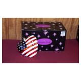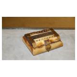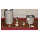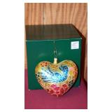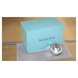 TIFFANY & CO. GLASS APPLE PAPERWEIGHT WITH BOX, DANIEL READ SIGNED & NUMBERED ART GLASS PIECE, CAMEL BONE AND BRASS TRINKET BOX.