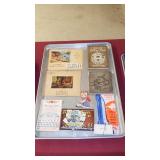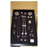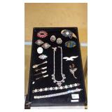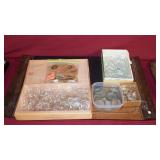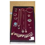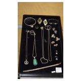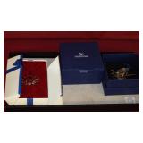 VINTAGE & COSTUME JEWELRY, 14K, 10K & STERLING FASHION RINGS WITH PRECIOUS STONES, 14K GOLD: PEARL EARRINGS, EMERALD & DIAMOND NECKLACE, PEARL & ONYX BEAD NECKLACE, DIAMOND PENDANT NECKLACE, BRAIDED BRACELET, TWEETY BIRD PENDANT, GREEN OPAL INLAY PENDANT, RAMS HEAD HOOP EARRINGS. STERLING: TIFFANY & CO.: HEART NECKLACE, EARRINGS, HEART PENDANT ON HEAVY CHAIN. AMETHYST CLADDAGH EARRINGS, CAROLYN POLLACK NECKLACE, GEORG JENSEN 2004 PENDANT & CHAIN WITH ORIGINAL BOX. ARNEX 17J POCKET WATCH. LARGE SELECTION OF POSTCARDS: HALLOWEEN, REAL PHOTO, LOCAL,HOLIDAY, SANTA, RAILROAD, ANIMALS, MILITARY, PATRIOTIC, BIRTHDAY, U.S. VIEWS, N.Y. STATE VIEWS, FOREIGN VIEWS. STEREOVIEWER WITH 31 CARDS, CDV's, TIN TYPES, DAGUERREOTYPES, AMBROTYPES. (14) SWAROVSKI FIGURINES (MOST WITH BOXES) INCLUDING SANTA, KINGFISHERS, PUFFINS, 100th ANNIVERSARY SWAN, ETC...
