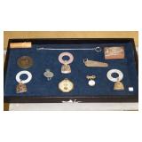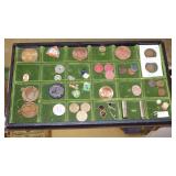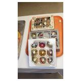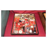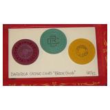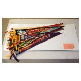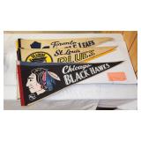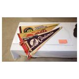 (56) VINTAGE PENNANTS (SPORTS-SOUVENIR-HOCKEY), (3) SARATOGA "BROOK CLUB" CASINO GAMING CHIPS.