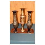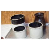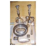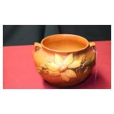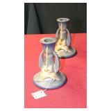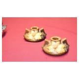 ROSEVILLE: #619-9" SUNFLOWER JARDINIERE, #667-5" CLEMATIS JARDINIERE & #1158-2" CANDLE HOLDERS,#394-8" ZEPHYR LILY BASKET (CHIP) & #1163-4 1/2" CANDLE HOLDERS.
