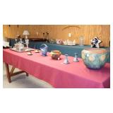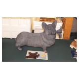 LARGE CORGI LAWN ORNAMENT "DEVOTED COMPANION", SANDSTONE & LIVINGSTONE CORGI STATUES. DOLLY DINGLE "EARLY MORN" BAVARIAN PORCELAIN PLATE BY GRACE DRAYTON.