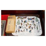SET OF 30 "SKATING PARTY" FLAT LEAD FIGURINES 1920'S GERMANY BY HANS HEINRICHSEN WITH BOX. (17) VINTAGE LEAD SOLDIERS.
