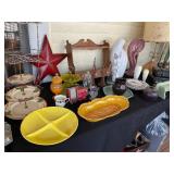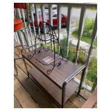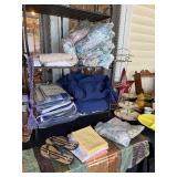 TONS of vintage here! Lots will be uncovered as we start set up next week! Please check back for more pictures. * Vintage/Antique furniture * Cast iron bathtub * Vintage metal front porch glider * Vintage clothing * MCM lamps & accessories * Antique drop leaf table |