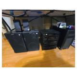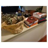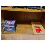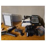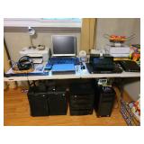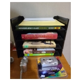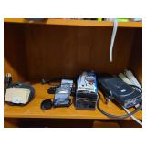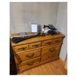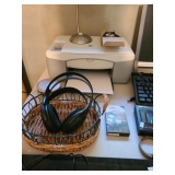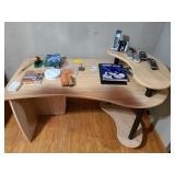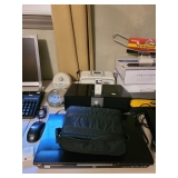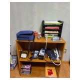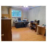 Office: Wood desk, landline phone, smoke alarm, surge protectors, cookbooks, cameras, staplers, Sony speakers, TV antenna, printer, headphones, PlayStation controllers, wood dresser, comic books