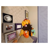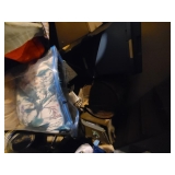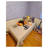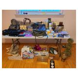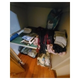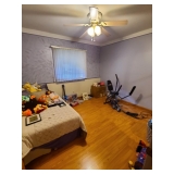 Bedroom: Shoes, handbags, outerwear, decorative statues, candles, children toys, exercise equipment, stuffed animals, perfume, iron