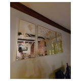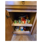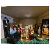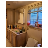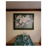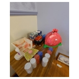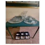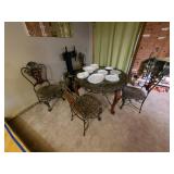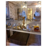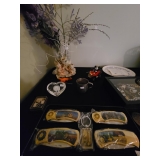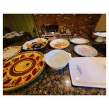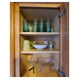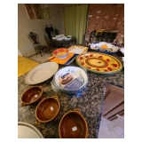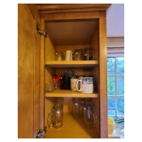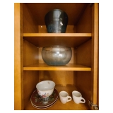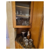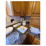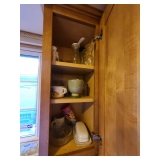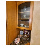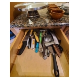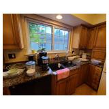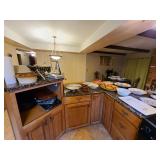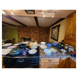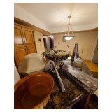Kitchen: Wall art, tea cups, glasses, vases, pots and pans, baking pans, serving dishes, mugs, knives, kitchen utensils, dining room set
