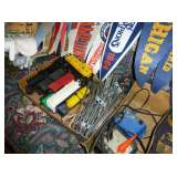 Aside from tons of primitive and farm items we also have a Solex motorized bike, Hedstrom unicycle, several other vintage bikes, Old car stock parts, Car manuals, TONS of nice tools, old wood stove, nice yard decor, yard tools, some vtg. signage, collection of beer bottles/cans, vintage bar items, some beer signs, several Stoneware crocks, Barbies in original boxes, Snowbabies collection, Die-Cast advertising cars and car banks, vintage Pennant collection, old Lionel train set, Jewelry, small advertising/collectible items, Bell collection, Sports items, signed baseballs, paper memoribilia, vintage Board Games, Teddy Ruxpin and Grubby with books and tapes, Box of Giant Tinkertoys, Misc. Toys, Handmade Doll Furniture, vintage hats, vintage purses, linens, elegant and newer glassware, vintage and newer Kitchen items, Table and Chair sets, Dressers, Chest of Drawers, Couch, Recliner,Lane Cedar Chest, Nice larger Curio Cabinet, Stainless Fridgidere electric stove, Refrigerator, Stand up Freezer, Washer and Dryer, vintage Gas Stove, Office and File Cabinets, Books, Craft items, patterns, general household and much, much more.. There is angle parking on the property, please park so others can get in as well. Hope to see you there! Blow Out on Sunday! |