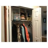 Bedroom: Shark vacuum, clothing, shoes, watches, jewelry, cabinet