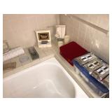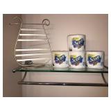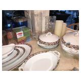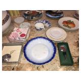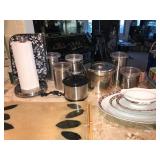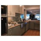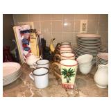 Kitchen: Plates, mugs, serving ware, toaster, coffee maker, coffee maker, candles, cook books, glasses, baskets