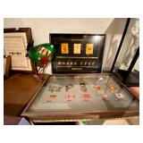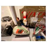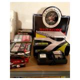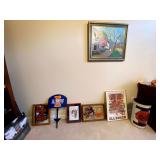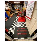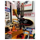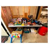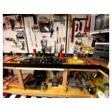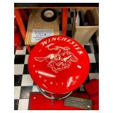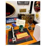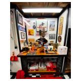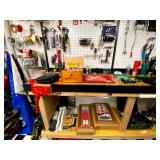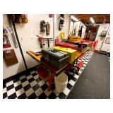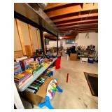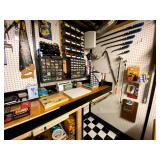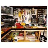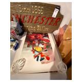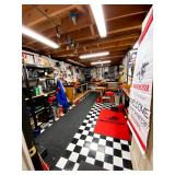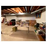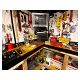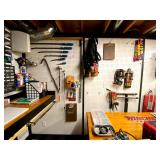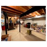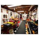 Basement: Full tool room/man cave in the basement as well as guns and ammo, large collection of Winchester Rifle memorabilia/decor, Micky Mouse dolls and art, Winchester ammunition art, workshop mats, barstools, metal signs, tool bags, cutting tools, vices, massive selection of hand tools, saws, board games, bowling pins, golf clubs, bikes, vases, souvenir glasses, John Deere wagon, Craftsman collectible cars, Samsung TV, Christmas decorations, ski polls, basketballs, snow sleds, power washer, Sony sound system, snowblower