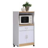 Hodedah Microwave Cart with One Drawer, Two Doors, and Shelf for Storage, White**