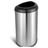 NINESTARS OTT-50-19BK Open Top Office Bathroom Trash Can, 13 Gal 50L, Stainless Steel Base (D Shape, Black Lid)**BRAND NEW
