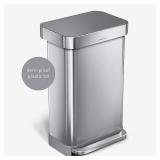 simplehuman 45 Liter Rectangular Hands-Free Kitchen Step Trash Can with Soft-Close, Brushed Stainless Steel with Plastic Lid**BRAND NEW
