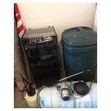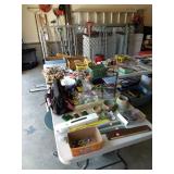 PARTIAL LIST OF ITEMS: Full Wicker Bedroom Suite; Armoire; Desk, Book cases; Office Chair; Filing Cabinet; Small Tables; 2 Televisions; Chest of Drawers; Vintage Wash Stand; Drop Front Desk; Odd Arm Chairs; Metal Green Porch Set; 2 End Tables; TV Stand; TV Cabinet; Coffee Table; Marble Top Table; 2 Duncan Phyfe Tables; White Kitchen Cabinet; Hand Painted Chest; Cutting Table; TV Trays; Bakers Rack; 2 White Kennedy Rockers; Metal Patio Set; Linens; Towels; Ladies Clothing & Accessories; Comforter Sets; Totes; Cleaning Products; Floor Lamps; Pictures; Japanese Screen; Wall Hanging; lamps; Office Supplies; Baskets; Area & Throw Rugs; Glassware; Pots & Pans; Small Appliances; Silverware; CD’s; Books; Back Pack Leaf Blower; Commercial Sprayer; Metal Dog Lot With Overhead; Vise; Bicycles; Electric Leaf Blower; Dryer; Lateral Filing Cabinet; Chest of Drawers; Yard & Hand Tools; Large Cabinet; Ladder; Trampoline; Christmas Decorations; Portable Baby Crib; Hand Sprayer; Metal Shelfing; Gasoline Tile Saw; Yard Chairs and lets of other items. Come find a treasure.