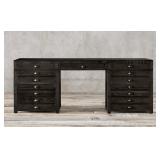 Selections from the most coveted collections of Restoration Hardware and Pottery Barn - with weathered materials, artisanal finishes, and iconic styling. Shop tables, desks, furnishings, light fixtures, and décor currently still found in their catalogs at a fraction of the price! Vintage Monterey Furniture – desk and matching dresser. Find handsome leather club chairs in various colors, multiple sleek sofas – in tomato or dark chocolate leather, plus an RH Cloud sectional in down and linen. Console tables and benches from rustic to ethnic to modern, display cabinets and kitchen cabinetry, metal and wood carts for every possible use – decorative and essential - a massive fabulously carved and painted bookcase - the perfect store fixture or living room anchor - a marvelous trestle style dining table plus a fine set of 6 currant red velvet hacienda style dining chairs to add a layer of style. A great selection of fine antique western and Asian trunks, chests, and coffers for patio or upcycled as a coffee table, a striking industrial chic tall open metalwork bookcase / storage cabinet, a wide choice of tribal ceremonial hide covered drums plus a great pair of conga drums in their stand, a pair of freestanding carved stone Buddhist Arhant figures, and a grand carved and painted Buddhist figure seated on a lotus throne. Incredible custom exterior lighting choices including a pair of monumental iron estate lanterns, and an array of current and fashionable table lamps with linen, silk and burlap shades.