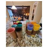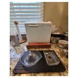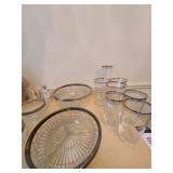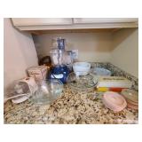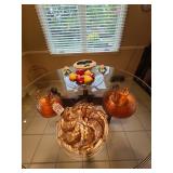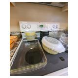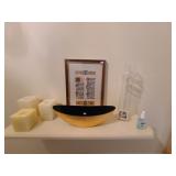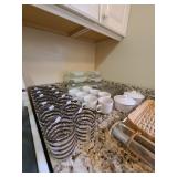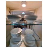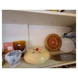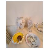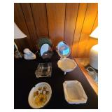 Kitchen: Gibson dishware set, hull candle holders and bowl, vintage depression glass set