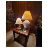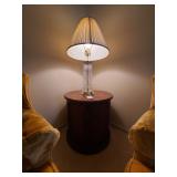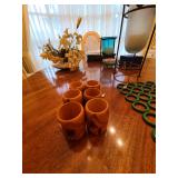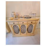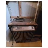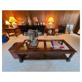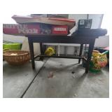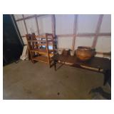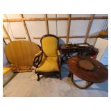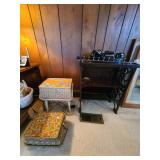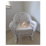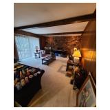 Den: Wicker bottom coffee table, wicker bottom end tables, phil co radio cabinet (gutted), swivel rocker, wicker bottom side table