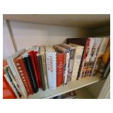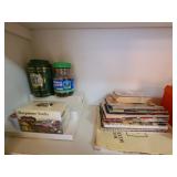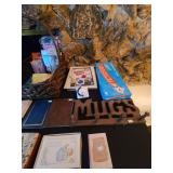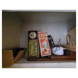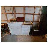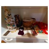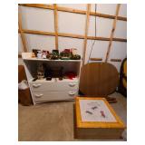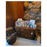 Basement: Christmas trees, Christmas decorations, games, small hutch, wide dresser, tall dresser, books