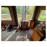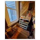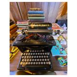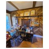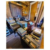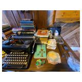 Aurora Shredder, small end table, Marbles, office desk, Books, LC Smith typewriter, Sewing supplies, vinyl records, Picture frames