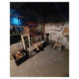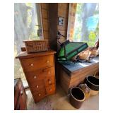 Rocking chair, Hammock, wood chest, wovem baskets, Games