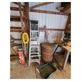 Air Compresser, Central Machinery Belt Sander, Craftsman 10" radial saw, ladders, folding chairs, Weber grill, Heatmate space heater, Rolling Magnetic sweeper, smoke hollow