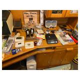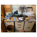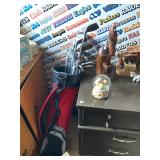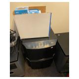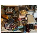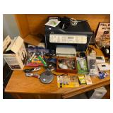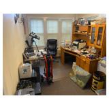 Office: Cross Cut paper shredder, humidifiers, new in box Blink security system, Homelite log splitter, Meade telescope, Polaroid camera, vintage cameras, HP printer/copier, printer ink and paper, office supplies, Red Wing wall art, file cabinets, wood media cabinet, desk and office chair