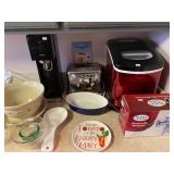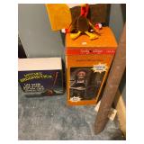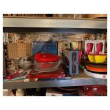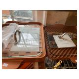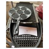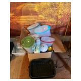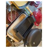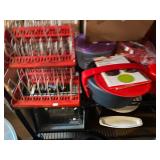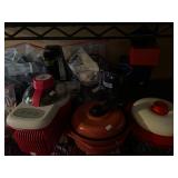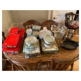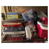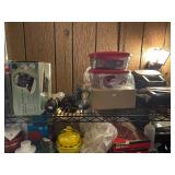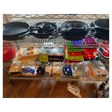 Kitchen and Kitchen Nook: Cast iron pans, food storage, cookie sheets, muffin tins, Masterbuilt grill, Masterbuilt smokers, meat slicer, Waring Pro meat grinder, meat tenderizer, thermoses, Copper Chef cook and bakeware, glassware, knife sets, Disney toaster, bread maker, Alpine Cuisine meat grinder