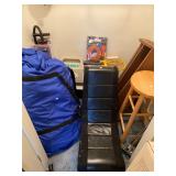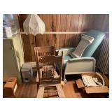 Bedroom 4: dressers, exercise equipment, Nordictrack, Precious Moments collection, glider rocker, golf clubs, camp chairs, large mirror