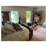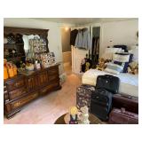 1st Floor Bedroom: Christmas decor, King Sleep Number bed, SPT air conditioner, mens clothing and hats, Christian Dior sweater, Levi jeans, Panasonic Blu-ray player, Air Care humidifier, Minolta camera, toiletries