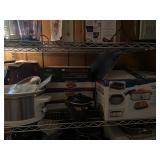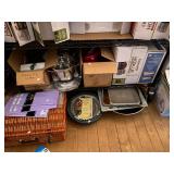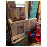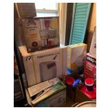 Bedroom 3: This room is PACKED with mostly new in box small kitchen appliances, utensils, cookware, pots/pans and more! Crock pots, crepe makers, sandwich makers, pancake makers, roasters, griddles, rice cookers, stock pots, mixers, blenders, ice cream makers, Margaritaville margarita maker, turkey fryer, toaster ovens, food storage and mixing bowls. Brands include: Cuisinart, KitchenAid, Ninga, Homelite, Wolfgang Puck, Wenzel, Oster, George Foreman, Breadman, Juiceman, Chef Select and more! SPT portable air conditioner, Dual Ultrasonic humidifier, Shop Vac wet/dry vacuum, Homedics foot spa
