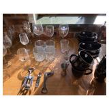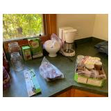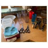 Kitchen: Glass set, mugs, kitchen essentials, decorative plates, jars, vases, pots