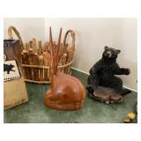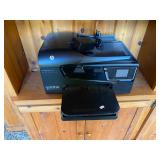Upstairs: Desk and office chair set, HP printer, clothing, heavy jackets, snow shoe decoration