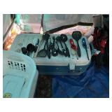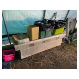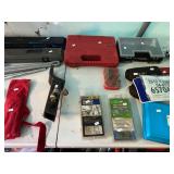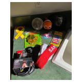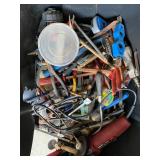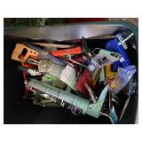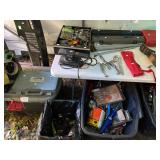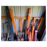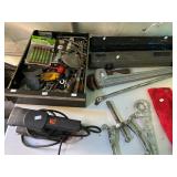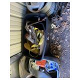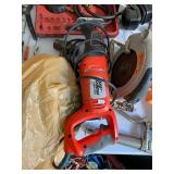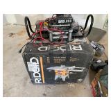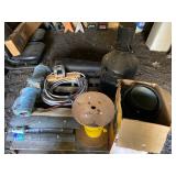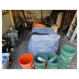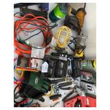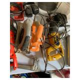 Garage: Craftsman electric tools, portable air tank, electric saws, Ridig electric blower, electric drill, gas cans, wood stoves, bikes, battery charger, hand tools, camping essentials, outdoor statues