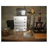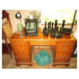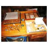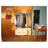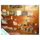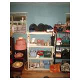 We are still going through rooms and have found a large collection of art posters, lots of sewing notions, a large collection of ladies hats and purses (Handbag/Purse collection including Nordstrom, Walborg Italy, Fossil, Genie Italy, Mantessak, Jean Fogel, Tignanello, J Jill, Norm Thompson, Mary Ann Rosenfeld, Elliott Lucca - many more.) and perfume bottles. A beautiful Waterford crystal desk clock and pen, very cute china condiment set in shape of living room furniture and lamps, vases, depression glass, and we're still digging