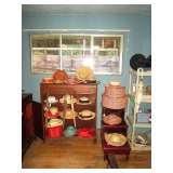 Kitchen is packed with old to newer kitchen items - lots of utensils, Pyrex, Corning, crocks, Fabulous "Pure butter" porcelain, 2 cast iron Popover/muffin pans, a few small appliances, cook books, too much to mention.