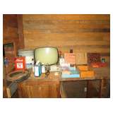 Other Stuff: Polaroid Colorpack 2 camera, H.O. Train Stuff, 2 Football helmets-one is out of the 50's/60's it is a Mac Gregor E7J size L with 49's sticker , Old Industrial Thread spools, 3 old Floor Polishers: one a Pink Shetland, 2 Johnson Wax Polishers-about 1930's/40's. They all work.