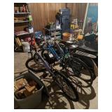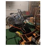 Garage: Purple Schwinn ranger bike, Schwinn Continental bike, vintage Schwinn bike, Craftsman wheelbarrow, Scott standard spreader, grass seed spreader, craftsman electric blower/vac, frigidaire elite fridge, Craftsman 18-in electric chainsaw, hammock, chair covers, golf club bag, candlesticks, baby gate, onion and potato holder, vintage table, gold mirror, doors, storm door, dog bed, ProForm treadmill, children's toys, stuffed animals, chairs, plant stands, metal and wood bench, tools, hand tools, mason jars, rakes and shovels, books