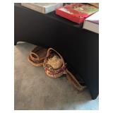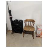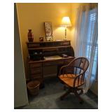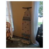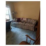 Bedroom 4: Rocking chair, books, bookcase, DVDs, foot stool, baskets, floral sofa, Hewlett-Packard deskjet 882c, vintage table, Tiffany style lamp, Mr coffee Mrs t for two set, sharper image wine glasses, vintage radio, bell beer mugs, ironing board, roll top desk, wood office chair, office supplies, AT&t phone