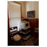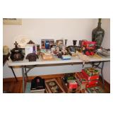 Nice clean sale with a little bit of everything. Beds, dressers, kitchen items, dishes, trunk, tv, lamps, dining room table and chairs, desk, tea cart, and vintage pole lamp, micro wave, occassion tables, pot and pans, small kitchen appliances, vintage baby bed, christmas stuff, decorator stuff, and much, much more....