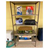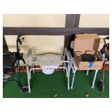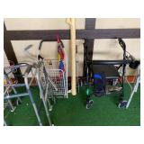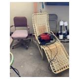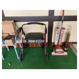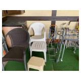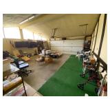 Garage: Yard games, office chairs, wicker bar stools, Eureka vacuum, rolling walkers, yard tools, boxes of electrical supplies