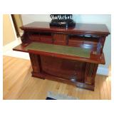 ATLANTIC BILLIARD CO. POOL TABLE WITH ALL ACCESSORIES AND MATCHING WALL CABINET FINE FURNISHINGS TO INCLUDE: Crescent cherry formal dining room table w 8 chairs, leaves and protective pads (Seats up to 12) Commode: Burled wood w ornate curved front commode.. Vintage marble top commode. Antique mahogany dressing table w mirror and stool. Hancock & Moore burgundy loveseat. Beautiful rugs of all sizes, lamps, pillows and art abound the home! MAN CAVE FURNISHINGS TO INCLUDE: Snow Shoes made of wood and hide. Cowhide three legged stool. Metal decorative Bear sign. Authentic deer antler lamp w suede lamp shade. Authentic Caribou Fur from Alaska. Set of two deer antler lamps. FRAMED RAMS & COUGAR WILD LIFE PRINT. SIGNED AND NUMBERED ARTIST GUY COHELEACH NOVELTIES TO INCLUDE Hand carved carousel horse. Authentic Caribou Fur from Alaska. Handmade birdcage ALL WILL BE SOLD! THIS SALE IS NOT TO BE MISSED