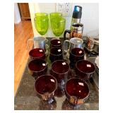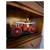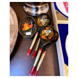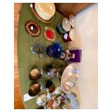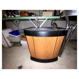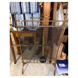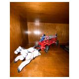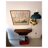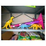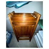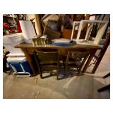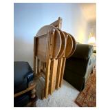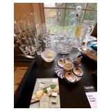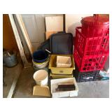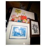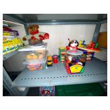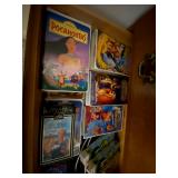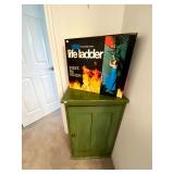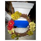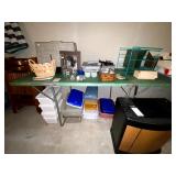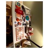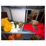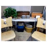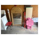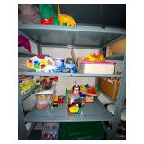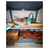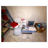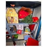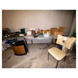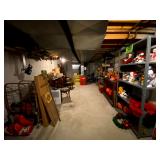 Basement: Antique picture frames, table tops, CustomPumper toy fire truck by American Lafrance, wooden folding chairs, patio umbrella, American Seating Co. folding chairs, Peanuts framed pillowcase, Disney albums, original artwork, vintage green folding table, candles, magazines, vintage kitchen table, vintage Berkshire house chairs, fake plants, wood stereo case, white table, rocking chairs, dresser, kitchen chairs, glassware, skis, ski boots, embroidered antique chairs, Typewriter, wheelchair, boardgames, children’s toys, vintage toys, Christmas decorations, Halloween decorations, Wrapping paper, large mirror, large feather wall art