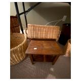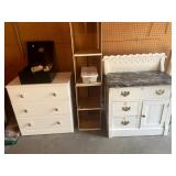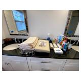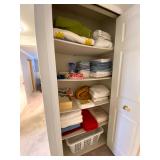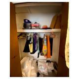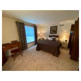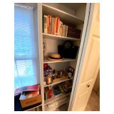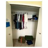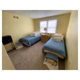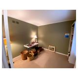 Upstairs: Walk-in closet full of clothes both women’s and men’s. Queen-size mattress and box spring and headboard, Ethan Allen nightstands, Ethan Allen wooden tall cabinet, vintage wooden bench, various picture frames, various book collection, vintage coach and purses, Darius bedside lamps, bathroom products, alarm clocks and radios, wall mirrors, small dressers, two twin beds, vintage tables, linen closet, Ethan Allen desk set up, queen mattress and box spring, children’s books, children’s toys, bedsheets and pillows, bedside tables