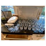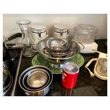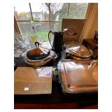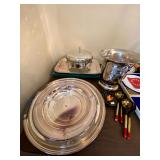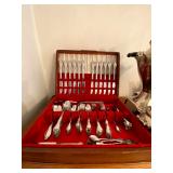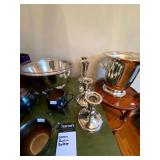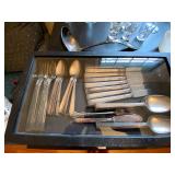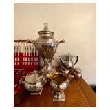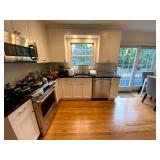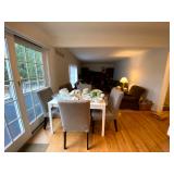 Main Floor: Fire escape ladder, wicker baskets, coasters, music boxes, briefcases, floor lamps, Area rugs, women’s coats, Beige Valore couch, vintage wind up clock, roll top desk, antique wooden chair, ornate wooden cabinet, silver plated silverware set, silver plated tea set, Green rustic buffet, Towle silver plated items, Crystal made in Germany, wine glasses, crystal balls, Waterford, Pyrex, a portrait of liberty plates, silver plated utensils, alvina Garcia bowl, Flat screen TVs, Full kitchen with glassware, pots and pans, T pack, storage jars, toaster, toaster oven, George Foreman, drinkware, IKEA dining room furniture set, black table, white table, living room couch, recliner, arm chairs, green glasses and wine bottles
