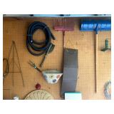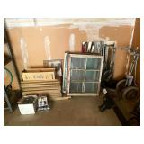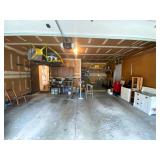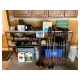 Garage: Golf clubs, vintage bicycle exercise, various dressers, vintage windows, lanterns, golf cart carrier, buckets, garden tools