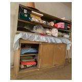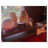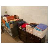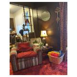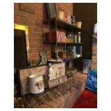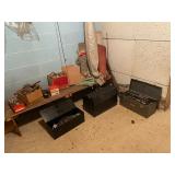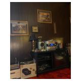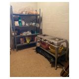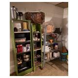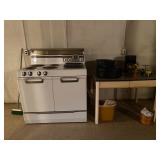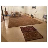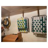 Basement: Rugs, wood folding chairs, wall decor, luggage, holiday decorations, stove, kitchen essentials
