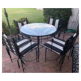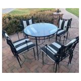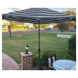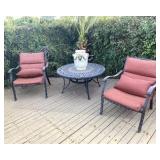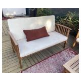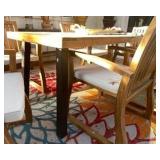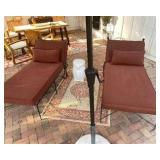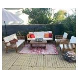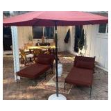 - Modern teak wood and wrought iron patio sets including tables/chairs/lounges/umbrellas, etc. with cushions!