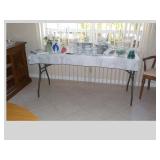 ITEMS IN SALE: Costume jewelry, Royal Dalton figurines, Lenox figurines, Fenton, Capadimonte, and much more very nice Lazy Boy couch & recliner, 2 lighted curio cabinets (one large and one smaller), salt & pepper collection, tin collection, a collection of old telephones, PC desk, regular desk, super nice office chair, sleeper couch queen bed with dresser/mirror, 2 night tables, Armour, another queen bed with dresser/mirror, and 2 night tables, dining room table with 6 chairs (2 with arms), hutch and server, lamps, 2 hanging lamps, (one is like stained glass not sure about the other one), dinette table with 4 rolling chairs, old scout badges and scarvesLP, Ho train, lots of train track (a lot new in package) Linol transformer, 70 piece set plus 3 piece carving set of silverware, some very nice crocheted pieces, formal dinnerware set (service for 12), full kitchen, several small appliances, book case, flat screen TV, another smaller TV, entertainment center, patio table with 4 rolling chairs, lounge and chair with ottoman, bar-b-Que, white wicker chair, glider, set of silverware, books, quilt stand, lots of office items, lots of ladies clothing large and extra large, shoes, men's cloths and shoes, a yellow fishing outfit, small plate collection, matching end tables and coffee table,