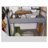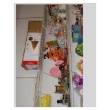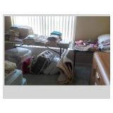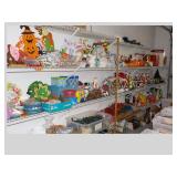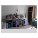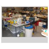 PC, filing cabinet, printer, vintage teddy bear, insulators, boom box, shark vac, linens, purses, pictures, metal wall decorations,Lots of holiday decorations, (Christmas, Thanksgiving, Easter, Halloween), lots of cleaning produces, chemicals, drill press, rolling cart, 2 work benches, 2 rolling chrome shelving, HO train, wheelchair, cork gun, yard tools, Lots of very nice storage tubs, several sizes, LP's,